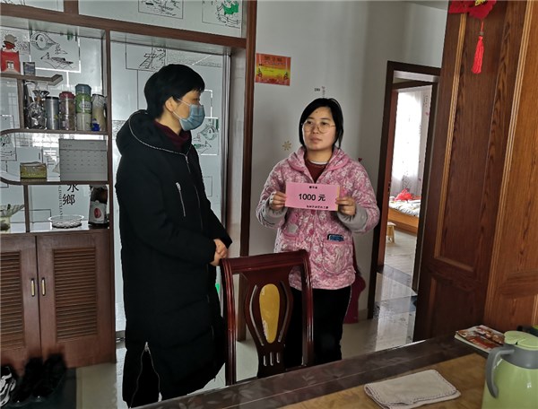 大地回春,百花齐放。3月6日上午,在第110个“三八”国际劳动妇女节来临之际,开发区妇工委走访看望了开发区平天湖社区和流坡社区疫情防控一线女同志和生活困难的妇女,将温暖与祝福送到她们身边。开发区妇工委全体人员先后走访了平天湖社区带病坚守岗位、加班加点工作的吴文兰,因病致贫的钱玲艳、刘中兰,还有生活贫困的钱桂英祖孙二人,关心关注她们工作、生活中的实际困难,分别赠与每人慰问金1000元。