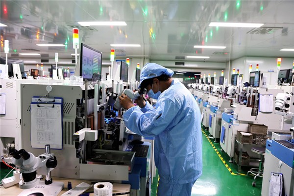 2023年,安徽先捷电子股份有限公司从广东揭阳整体搬迁至池州经开区,开启“二次创业”,产品广泛应用于储能、新能源、汽车电子、网络通信等多个领域。自投产以来,该公司订单量持续增长,业务覆盖长三角、珠三角地区。目前,公司月产能已达3亿只电子元器件,产品供应华为、小米等知名企业。图为该公司技术人员正进行芯片焊接。