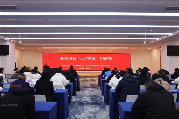 为扎实推进“无诈”企业创建工作,1月23日下午,池州经开区平安办会同市公安局开发区分局组织召开“反诈联盟”专题讲座,为企业员工讲授反诈防诈知识。