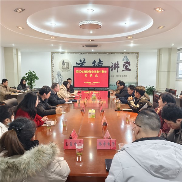 为规范园区电商行业经营秩序,压实企业主体责任,1月26日,区市场监管局联合区商务科技局组织开展园区电商经营企业集中警示约谈会, 12家重点电商经营企业负责人参会。