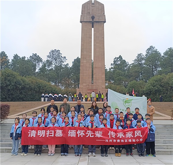 上午十时,贵池区绿地小学党支部与少先队501中队祭扫仪式在纪念碑广场庄严开启。党员教师和少先队员缓步上前,将缀满黄菊的花圈敬献碑前,“革命烈士永垂不朽”的缎带在风中轻扬;少先队员高举右拳:“继承先烈遗志,争做强国少年!”声浪穿透林海,与纪念碑上鎏金大字交相辉映。最后,全体师生围绕纪念碑敬献鲜花,饱含着对先烈的无限缅怀与崇高敬意,也蕴含着新时代少年儿童继承先烈遗志、勇担时代使命的坚定决心。